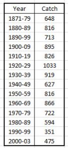 Yet from the 1980s onward, contrary to the data in the table, catches have improved and show an upward trend.