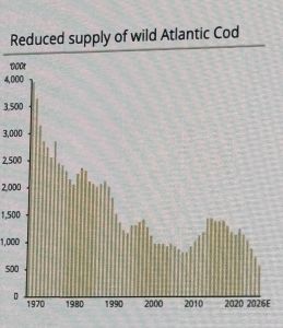 Norway prides itself on supplying the UK market with cod, haddock and salmon amongst other species, yet at the same time, there is concern about the state of stocks of wild caught cod and haddock, meaning that competition in the global markets for these species is pushing up prices as I have witnessed myself in the UK retail market. Whether cod and haddock will continue to flow into the UK at the same levels as in past is unclear which reinforces the increasing importance of salmon farming to the Norwegian economy and to exports.